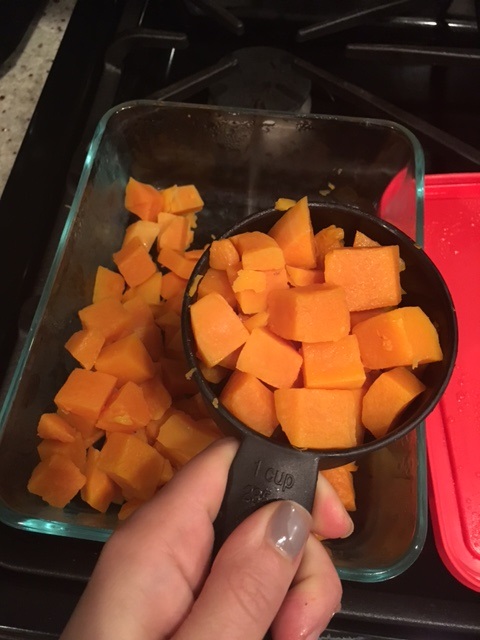 - *I buy the pre-cubed butternut squash at the grocery store. You can also buy frozen.