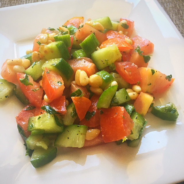 This delicious cucumber tomato salad recipe is a take on an Israeli salad.