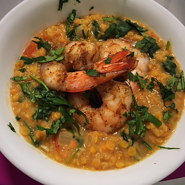 In need of a quick, healthy and tasty dinner recipe? You came to the right place with this Indian Spiced Lentil with Shrimp dish!