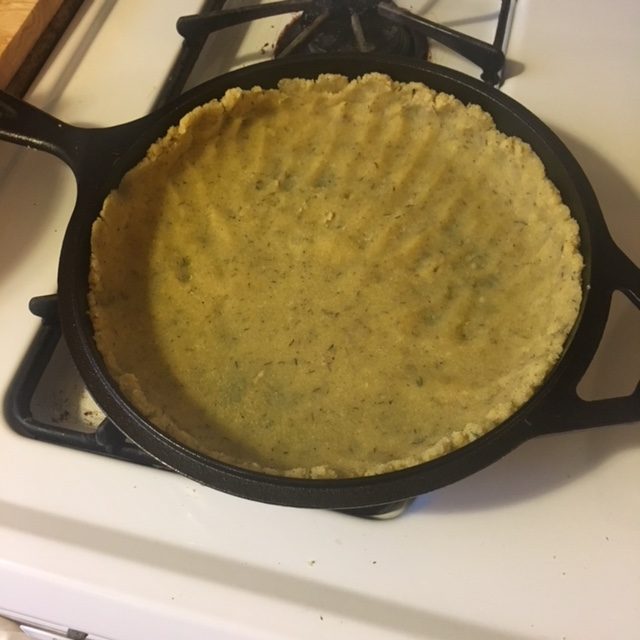 Just add minced fresh garlic and dried thyme to the almond flour dough and press it into a cast-iron skillet.