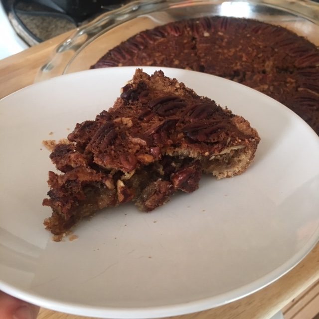 Bake off the pie crust for about 10-minutes prior to adding the Low FODMAP pecan pie filling.