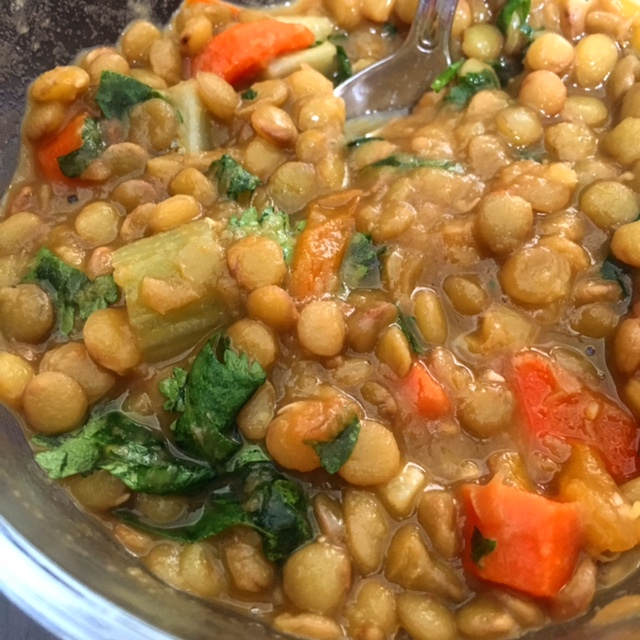 This simple lentil soup recipe makes for the perfect, well balanced lunch. It is flavorful and packed with nutrients like B-vitamins, iron, and zinc. Lentils are also rich in satiating protein and fiber with just 1/4 cup raw containing 12g of protein and 5g of fiber.