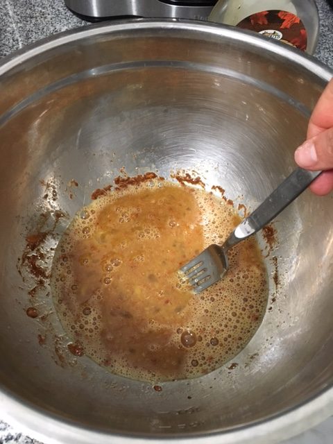 This step should not take too long, leaving you plenty of time to also mix together the chopped pecans with melted coconut oil. Throw the nut mixture into a small bowl and set it aside for the casserole topping!