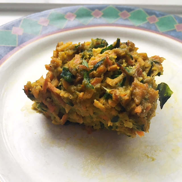 - In a large skillet over medium-high heat, add the olive oil. Mix in the shredded vegetables including zucchini, sweet potato, carrot, and onion. Add the seasonings including salt, pepper, and garlic.